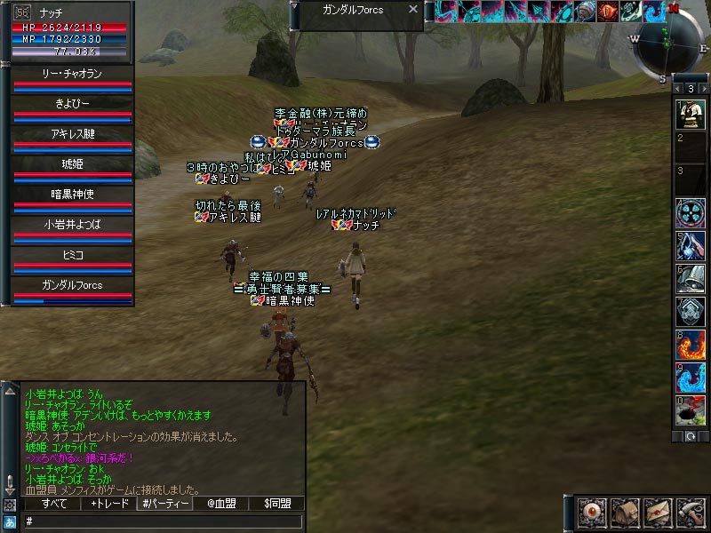 2018/11/17 どこに向かっているのか MoonKnightsアキレス腱ガンダルフorcsきよぴーナッチヒミコリー・チャオラン小岩井よつば暗黒神使琥姫 こんにちはナッチです。 今回のSSはこちら。 ギランからどこかに移動してるみたい。 移動先は不明。DVCじゃないよね…? カテゴリー:クロニクル1